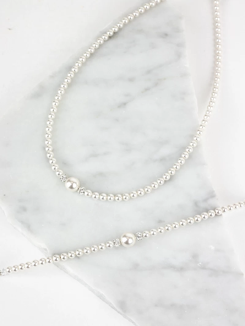 Materiaal: Gerhodineerd zilver / Parels / Swarovski kristal