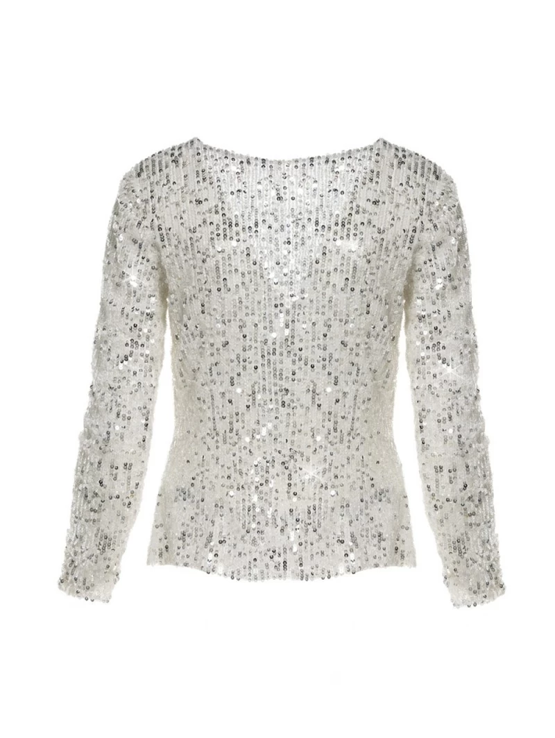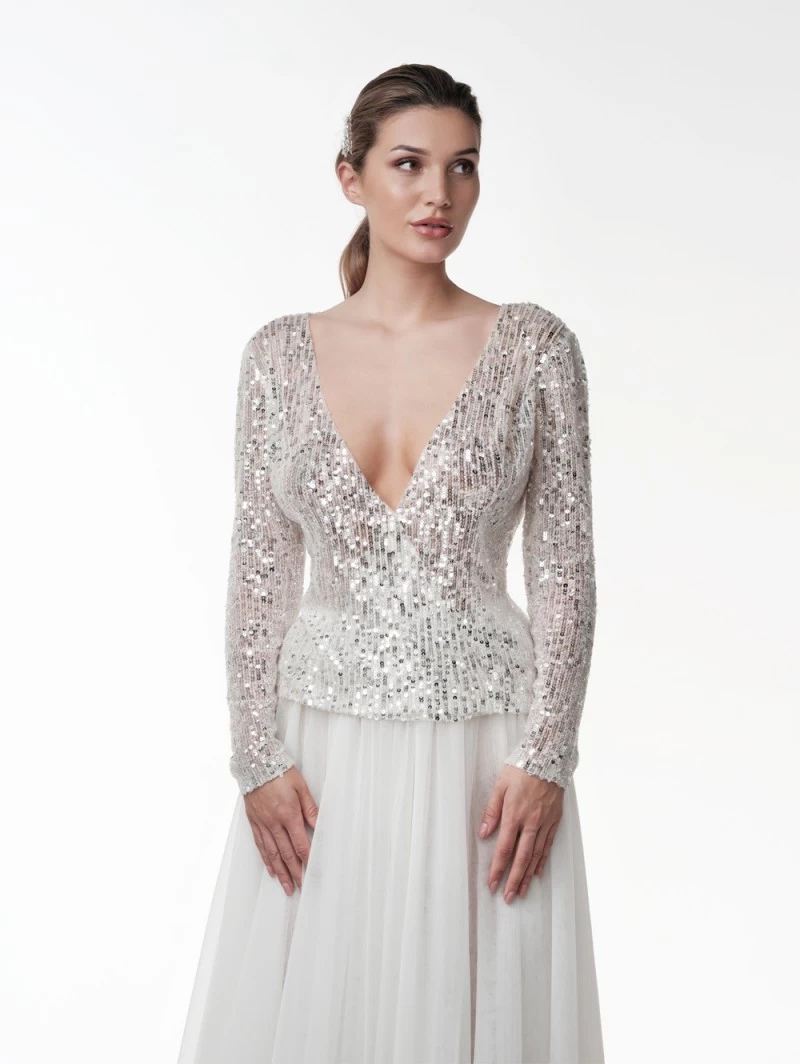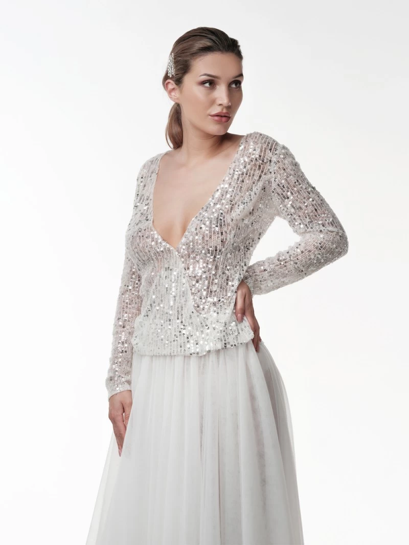 Details: ivoorkleurige luxe top gemaakt van soft-tule, pailletten